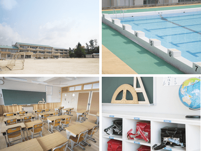 (校舎、校庭、正門、教室、廊下、体育館、図書室、音楽室、家庭科室、職員室等々・・・・)