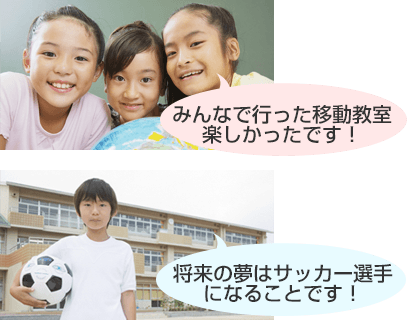 児童1名ずつ、もしくはグループごとになって、楽しかったこと、将来の夢などのコメント映像(それぞれ数十秒ずつ)