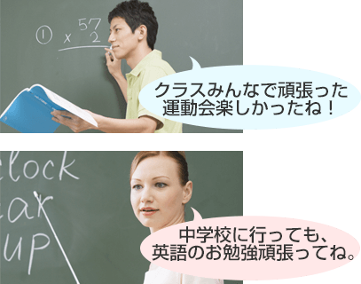 学校の思い出シーンを10カット程度。(映像または写真にて)
