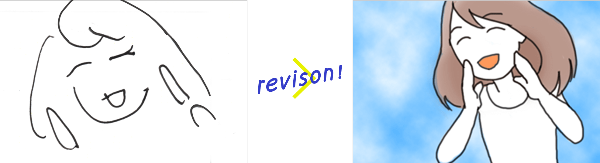 絵コンテのベース(走り書きイラスト)から、線を整え、色を加えたイラストに変更します。